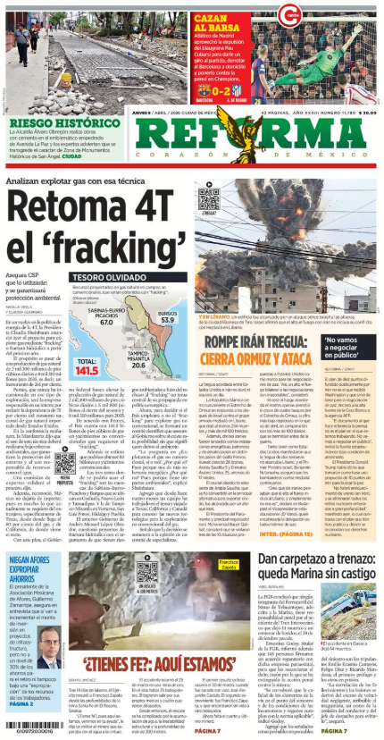 REFORMARetoma 4T el 'fracking' En un vuelco en política de energía de la 4T, Presidenta Sheinbaum anunció proyecto para explotar gas mediante 'fracking' a partir de 2027. https://www.reforma.com/retoma-4t-el-fracking/ar3183468?v=6 |