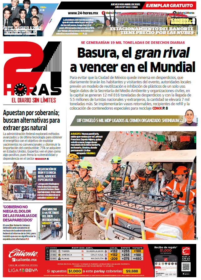 Por juegos y festejos limpios en la Copa Mundial 2026 Para evitar que la Ciudad de México quede inmersa en 19 mil toneladas de basura, que diariamente generarán los habitantes y visitantes durante el Mundial de Futbol FIFA 2026, las autoridades capitalinas impulsan un modelo de reciclaje e inhibición del uso de plástico de un solo uso, así como una campaña de juego limpio dentro y fuera de la cancha. Desde el Gobierno y el Congreso capitalino, contemplaron algunos retos de esta celebración deportiva internacional, los cuales deben ser atendidos para evitar problemas posteriores como es un desbordamiento en el manejo de la basura. https://24-horas.mx/cdmx/por-juegos-y-festejos-limpios-en-la-copa-mundial-2026/ |