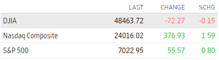 INDICES BURSATILESEl 15 de abril de 2026, Wall Street cerró con resultados mixtos, impulsado por un fuerte optimismo ante la posible tregua entre EE.UU. e Irán. El S&P 500 y el Nasdaq alcanzaron nuevos máximos históricos, recuperándose de tensiones previas. |