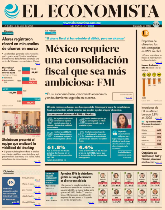 México requiere un ajuste fiscal más ambicioso para frenar la deuda: Era Dabla-Norris El escenario incierto o de crisis, obliga a los gobiernos a tomar decisiones entre prioridades, por lo que deben sustentar sus decisiones con argumentos convincentes y ejercer un gasto eficiente. Para que México consiga reducir la deuda del gobierno, tendrá que avanzar hacia una consolidación más ambiciosa y equilibrada, con mayor énfasis en la generación de ingresos, advirtió Era Dabla-Norris, subdirectora del Departamento de Asuntos Fiscales en el Fondo Monetario Internacional (FMI). Si bien reconoció que el gobierno realizó un ajuste significativo desde el histórico déficit público que recibió de la administración anterior, acotó que ha sido resultado de racionar el gasto y de ciertos esfuerzos para mejorar el cumplimiento de obligaciones fiscales. https://www.eleconomista.com.mx/economia/mexico-requiere-ajuste-fiscal-ambicioso-frenar-deuda-dabla-norris-20260415-808967.html |
