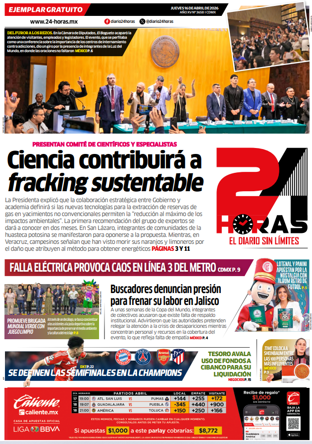 CLAUDIA SHEINBAUM PRESENTA GRUPO INTERDISCIPLINARIO DE EXPERTOS PARA EL FRACKING La presidenta Claudia Sheinbaum dio el siguiente paso en su proyecto encaminado a explotar el gas natural a través de la fractura hidráulica. En Palacio Nacional, presentó al grupo interdisciplinario de expertos que asesorarán al Gobierno para ver la viabilidad de realizar el denominado fracking. “Nos puedan dar una orientación en 2 meses, que nos digan sí es factible hacerlo, pero para disminuir los impactos ambientales se requiere reciclamiento del agua, o sí es factible hacerlo, pero con el CO 2 espumoso, sí es factible hacerlo, pero bajo estas condiciones, sí es factible hacerlo, pero solo es factible socialmente hacerlo en estas regiones mientras no se desarrolle más la tecnología”, mencionó. En la conferencia mañanera, el rector de la UNAM, Leonardo Lomelí Vanegas, afirmó que el análisis considerará tanto los beneficios como los costos ambientales y sociales, así como las tecnologías disponibles para mitigarlos. “Pondremos nuestro mejor empeño para determinar tanto los costos como los beneficios… el costo ambiental, el costo social, tener presentes también las tecnologías que nos permiten minimizar esos costos y las opciones para mitigar los costos, pero es muy importante también en el beneficio”. Cabe mencionar que son 17 expertos de instituciones como: La Universidad Nacional Autónoma de México (UNAM), el Instituto Politécnico Nacional (IPN), la Universidad Autónoma Metropolitana (UAM) y el Instituto Mexicano del Petróleo (IMP), entre otros. LAURA ITZEL CASTILLO, PRESIDENTA DEL SENADO, HIZO UN LLAMADO A ALCANZAR LA PAZ PERMANENTE EN MEDIO ORIENTE El Senado de la República hizo votos porque en las conversaciones entre las partes logren los acuerdos necesarios para alcanzar la paz permanente en Medio Oriente. La presidenta de la Mesa Directiva, Laura Itzel Castillo Juárez, dio lectura a un pronunciamiento de este órgano de dirección de la Cámara, en el que se manifiesta por la solución pacífica y diplomática de toda controversia. Destacó el llamado a la paz hecho por la presidenta de México, Claudia Sheinbaum Pardo, porque “se sustenta en la larga tradición diplomática mexicana, comprometida con la paz en el mundo, y que se establece como principio central de nuestra política exterior, contenido en nuestro marco constitucional”. De igual manera, añadió, respaldamos los llamados a la paz de las Naciones Unidas y líderes mundiales, ya que un cese al fuego definitivo es el único camino a la paz en Medio Oriente. KENIA LÓPEZ PRESIDENTA DE LA CÁMARA DE DIPUTADOS ASEGURÓ QUE FRACKING SÍ, PERO CON RESPONSABILIDAD AMBIENTAL Y EFICIENCIA ADMINISTRATIVA Al afirmar que México tiene la oportunidad de avanzar hacia una verdadera soberanía energética, la presidenta de la Mesa Directiva de la Cámara de Diputados, Kenia López Rabadán, se pronunció a favor de usar el fracking como técnica de extracción, pero con responsabilidad ambiental y eficiencia administrativa. “La exploración y extracción de gas natural es una vía estratégica para fortalecer la seguridad energética, reducir la dependencia del exterior y garantizar el abasto que demanda el desarrollo del país”, señaló en entrevista con representantes de los medios de comunicación. Este proceso, dijo, debe realizarse con estricto apego a las normas ambientales y bajo los más altos estándares técnicos y regulatorios, asegurando la protección del entorno y de las comunidades. La soberanía energética no sólo garantiza el abasto, sino que es una plataforma para elevar la competitividad del país, atraer mayor inversión y generar empleos mejor remunerados, con impacto directo en el crecimiento económico y el bienestar de las familias, aseveró. IGNACIO MIER, PRESIDENTE DE LA JUCOPO EN EL SENADO CONSIDERÓ QUE MÉXICO TIENE LA OPORTUNIDAD DE DIVERSIFICAR TRATADOS COMERCIALES El Senado de la República fue sede de una visita de integrantes del cuerpo diplomático de la Unión Europea (UE) residente en México, encabezado por el embajador de la UE en nuestro país, Francisco André. El encuentro, que fue convocado por el presidente de la Comisión de Relaciones Exteriores, Alejandro Murat Hinojosa, lo encabezaron la presidenta del Senado de la República, Laura Itzel Castillo Juárez, y el presidente de la Junta de Coordinación Política, Ignacio Mier Velazco quien indicó que México tiene la gran oportunidad para diversificar el intercambio con la UE en rubros como economía, cultura, derechos humanos y desarrollo de nuevas tecnologías. Dijo que, si bien México tiene con Estados Unidos y Canadá uno de los tratados más importantes, es indispensable ampliar el vínculo con la UE, y afirmó que “Mexico es buen socio comercial y estamos convencidos de que es necesaria la inversión, sobre todo en materia energética”. En ese sentido, resaltó que el Senado de la República tiene la disposición constitucional de la política exterior y la aprobación de tratados. “Toda la riqueza histórica, política y cultural de Europa es fundamental en México, en la diversidad de aquel continente podemos ver también la diversidad de México, diversidad que al mismo tiempo nos ha vinculado”, expuso. RICARDO MONREAL, LÍDER DE MORENA EN DIPUTADOS PIDE AL PVEM NO CONFIARSE El diputado Ricardo Monreal advirtió que no hay triunfos para siempre ni derrotas permanentes y que el Partido Verde Ecologista de México (PVEM) no debe confiarse, porque Morena es una fuerza muy sólida en todo el país. Lamentó que la coalición enfrente tensiones tras la decisión del PVEM de competir solo en San Luis Potosí, lo que considera una noticia que afecta al bloque, aunque reconoce que su partido se siente fuerte para buscar el triunfo. Sobre la eventual candidatura del coordinador del Verde, Carlos Alberto Puente, en Zacatecas, Monreal señaló que le tiene respeto, lo considera un compañero seri
