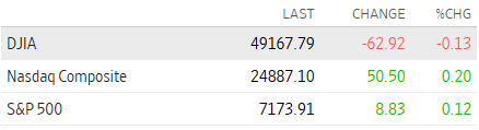 INDICES BURSATILESWall Street cerró en terreno mixto el lunes 27 de abril de 2026, con el S&P 500 y el Nasdaq marcando máximos históricos. El Dow Jones bajó un 0.13%, mientras el S&P 500 subió un 0.12% y el Nasdaq ganó un 0.19%. La sesión estuvo marcada por la cautela ante tensiones geopolíticas entre EE. UU. e Irán y la espera de resultados tecnológicos. |