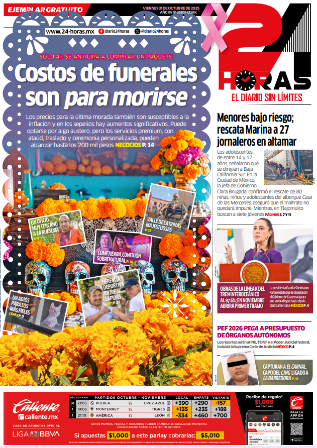 Morir en México sale 20% más caro este 2025 La muerte también se ajusta a la inflación y, en México, los servicios funerarios han registrado aumentos significativos este año, donde un paquete básico cuesta entre 15 mil y 30 mil pesos, es decir hasta un 20% más, de acuerdo con estimaciones del sector. Los paquetes más completos -con ataúd premium, traslados y ceremonias personalizadas- pueden superar los 80 mil pesos. El incremento en los precios es impulsado, primordialmente, por el alza en materiales, transporte y mantenimiento, aunque la ubicación también influye, pues la Ciudad de México, Monterrey y Guadalajara son las entidades que concentran los costos más altos, debido a la demanda y al encarecimiento de los insumos. https://24-horas.mx/negocios/morir-en-mexico-sale-20-mas-caro-este-2025/ |