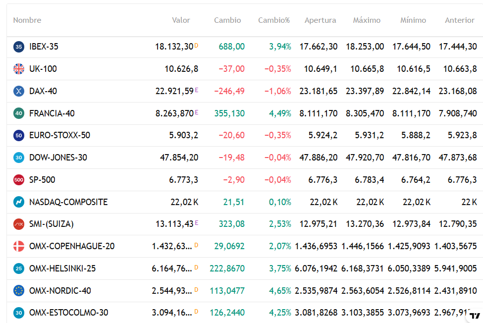 Wall Street sube con fuerza por acuerdo de alto el fuego entre EU e IránLATINOAMERICAE.E.U.U.ASIA EUROPA Fuente: El economista.es, Forbes, El Economista, El Financiero |