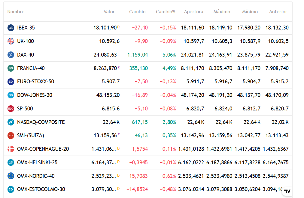 ÍNDICES BURSATILES