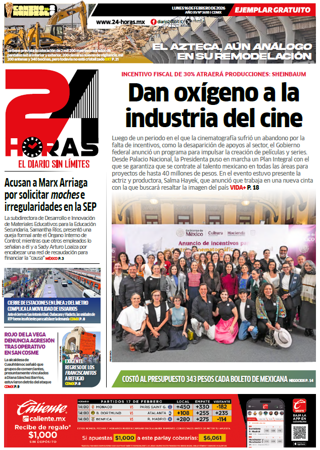 CLAUDIA SHEINBAUM ANUNCIÓ BENEFICIOS FISCALES PARA EL CINE Como cada fin de semana la presidenta Claudia Sheinbaum estuvo muy activa y ayer dio buenas noticias para la industria cinematográfica. La mandataria anunció que hoy se publicará en el Diario Oficial de la Federación un plan integral de apoyo a la industria, en particular un incentivo fiscal de 30 por ciento en el ISR a producciones que se realicen en México. Detalló que se trata de un “crédito fiscal” en el ISR de hasta 30 por ciento a producciones que tengan un 70 por ciento de proveeduría nacional y no rebasen los 40 millones de pesos. “Este incentivo tiene una comisión del gobierno, que busca realmente apoyar, que se desarrollen aquellas producciones, que de otra manera a lo mejor no tendrían la oportunidad; y al mismo tiempo atraer producciones internacionales, pero garantizando que se contrate a las y los mexicanos en todos los oficios que tienen que ver con la cinematografía; que garanticemos que una producción internacional no llega con todo y se va, sino que aquí se desarrolle todo este talento que tenemos en México”.. IGNACIO MIER, PRESIDENTE DE LA JUCOPO ADELANTÓ SIN PRISAS SE ANALIZARÁ INCIATIVA SOBRE JUECES SIN ROSTRO El Senado de la República se tomarán el tiempo necesario para revisar la iniciativa de la presidenta Claudia Sheinbaum para proteger la identidad de los juzgadores, conocida como “la de los jueces sin rostro”, debido a que es un asunto de gran relevancia que ha causado controversia. Así lo afirmó el presidente de la Junta de Coordinación Política de la Cámara alta, Ignacio Mier quien dijo que al periodo ordinario le restan aún 75 días, por lo que de entrada van a analizar las opiniones expresadas en los conversatorios que organizó la Comisión de Justicia, entre éstas la del director general del Instituto Nacional de Ciencias Penales, Jorge Nader Kuri, quien planteó posponer la aprobación de la iniciativa presidencial para incluirla en una reforma integral del sistema penal que se prepara. En este sentido, detalló que deberán ver cómo se vincula con la iniciativa de la presidenta Sheinbaum que modifica el Código Nacional de Procedimientos Penales y la Ley Federal contra la Delincuencia Organizada y si es necesario que se articule con ese proyecto integral. Estaremos atentos. LAURA ITZEL CASTILLO, PRESIDENTA DEL SENADO, DETALLA TEMAS QUE SE DESARROLLARÁN ESTA SEMANA En esta semana, en la Cámara de Senadores se abordará el dictamen sobre la solicitud del Poder Ejecutivo Federal para autorizar el ingreso de 12 elementos militares de Estados Unidos, a fin de que participen en ejercicios de capacitación en nuestro país, del 27 de febrero al 15 de julio de 2026. Ayer, domingo, la presidenta del Senado de la República, Laura Itzel Castillo Juárez, compartió la agenda legislativa para la semana que viene, en la que se llevará a cabo la votación para la entrega del Reconocimiento “Elvia Carrillo Puerto”, correspondiente a 2025. Además, subrayó que, en el marco del Día Internacional de la Lengua Materna, una representante de los pueblos indígenas emitirá un mensaje desde la tribuna en su lengua originaria, para compartir los valores culturales, experiencia y trabajo de su comunidad. Castillo Juárez refirió que la Comisión de Defensa Nacional, cuya reunión está programada en la Gaceta Parlamentaria para el próximo martes, votará el dictamen sobre la solicitud que realizó el Ejecutivo para autorizar el ingreso de 12 elementos del 7/o. Grupo de Operaciones Especiales del Comando de Operaciones Especiales Norte de Estados Unidos. KENIA LÓPEZ, PRESIDENTA DE LA CÁMARA DE DIPUTADOS LLAMA AL GOBIERNO A GARANTIZAR SALUD DE LOS MEXICANOS La presidenta de la Mesa Directiva en la Cámara de Diputados, Kenia López Rabadán, consideró que el gobierno tiene dos deudas pendientes: la seguridad y la salud. Y en este sentido, la legisladora instó a la administración de Claudia Sheinbaum a tomar medidas inmediatas para adquirir las vacunas contra el sarampión, subrayando la urgencia de fortalecer la protección de la población ante nuevos brotes. Durante una visita a Durango, López Rabadán advirtió que “lamentablemente no llegamos todas”, expresión que resume la situación de muchas mujeres en México. Según la senadora, la crisis de inseguridad afecta especialmente a las madres buscadoras, quienes siguen “con sus propias manos” en la búsqueda de sus hijos desaparecidos, a menudo sin respaldo institucional. A este panorama se suma la falta de acceso a medicamentos y tratamientos. La legisladora subrayó que “no han llegado las mujeres que esperan en un hospital por un resultado, una quimioterapia o una medicina”, reflejando la realidad de quienes enfrentan enfermedades sin los recursos necesarios para su atención. Usted qué opina. RICARDO MONREAL, COORDINADOR DE MORENA EN DIPUTADOS A FAVOR DE LEGISLAR EN MATERIA DE IA Ricardo Monreal, coordinador de Morena en Diputados, afirmó que es necesario adaptarse, legislar y generar condiciones para el uso de la inteligencia artificial de manera responsable. El también presidente de la Junta de Coordinación Política indicó que “en un mundo donde la inteligencia artificial deja de ser una promesa lejana para convertirse en fuerza transformadora de nuestra vida cotidiana y de las estructuras más estratégicas del Estado, surge la urgencia de comprenderla, orientarla y, sobre todo, regular con visión de futuro”. Agregó que “soy de los pocos usuarios a estos sistemas. Sin embargo, son indispensables para la comunicación política con todas las personas. En esto de la inteligencia artificial, que ahora está de moda en todas partes del mundo, ya no es posible ignorarla”. Subrayó que incluso los países en el mundo tienen que adaptarse, legislar y generar condiciones para el uso de la inteligencia artificial de manera responsable. DIPUTADO ALFONSO RAMÍREZ CUÉLLAR PIDE APLAZAR EL