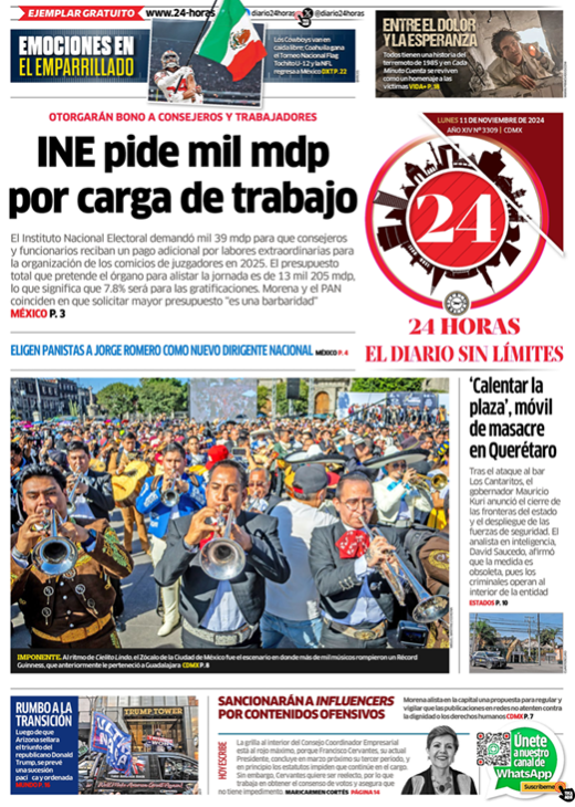 TRASCENDIÓ (MILENIO)Que al festejo por la victoria de Jorge Romero acudieron viejos panistas enfrentados con la dirigencia de Marko Cortés, como el diputado Germán Martínez, el ex subsecretario de Gobernación Roberto Gil y el ex vocero de la Presidencia Max Cortázar, lo que solo significa dos cosas: el genuino interés por reconstruir ese partido en unidad o la necesidad de ponerse a las órdenes del ganador para obtener chamba. Eso sí, quien ganó en el aplausómetro fue la alcaldesa de Cuauhtémoc, Alessandra Rojo de la Vega. Que el presidente de la Junta de Coordinación Política de la Cámara de Diputados, Ricardo Monreal, sostuvo en los últimos días reuniones privadas con integrantes del INAI y del Ifetel, así como con representantes de otros órganos autónomos condenados a la extinción, pero a ninguno se le dio esperanzas de salvación. Por el contrario, todos recibieron la confirmación de que la mayoría parlamentaria en San Lázaro aprobará esta misma semana la reforma para borrarlos del texto constitucional. Que la consejera jurídica de la Presidencia, Ernestina Godoy, lanzó ayer la invitación para registrarse al proceso de elección de cargos en el Poder Judicial, a realizarse el 1 de junio de 2025 como parte de la reforma sobre el tema que tuvo a la opinión pública dividida durante meses. “¿No ha sido tu sueño ser juez, jueza, magistrado, magistrada, ministro o ministra? ¿Eres licenciado en derecho? ¿Tienes cinco años de ejercicio? Es hora de inscribirse”, sostuvo la ex fiscal capitalina en un video difundido en redes sociales. Que en el INE y la Secretaría de Gobernación se encendieron los focos rojos luego de una reunión fuera de protocolo entre Miguel Ángel Patiño, director ejecutivo de Organización, y Amaranta Arroyo, directora de Administración del instituto, con Maribel Aguilera Cháirez, directora de Talleres Gráficos de México, quienes en una cita a puerta cerrada discutieron posibles precios del material para la elección judicial, aun cuando la comisión encargada de ese proceso no ha sesionado ni aprobado nada. Se sabe que ambos directores no avisaron a ningún consejero ni a la Secretaría Ejecutiva. |
