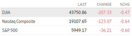 Los tres principales índices de Wall Street cerraron con pérdidas las negociaciones de este jueves. Los promedios en Estados Unidos bajaron en una sesión en la que el presidente de la Reserva Federal dijo que los datos muestran que no hay prisa por bajar las tasas. |