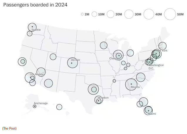 Las aerolíneas han cancelado más de 1000 vuelos para cumplir con una directiva de la FAA relacionada con el cierre del gobierno, que exige la reducción del tráfico aéreo en 40 aeropuertos, incluidos Atlanta, Chicago y Dallas. Las aerolíneas cancelaron cientos de vuelos el viernes —la cifra más alta desde que comenzó el cierre del gobierno— mientras se esforzaban por cumplir con una orden del gobierno de Trump para reducir el tráfico aéreo en medio de la creciente preocupación por la posible escasez de personal. https://www.washingtonpost.com/transportation/2025/11/07/flight-cuts-shutdown-duffy/ |