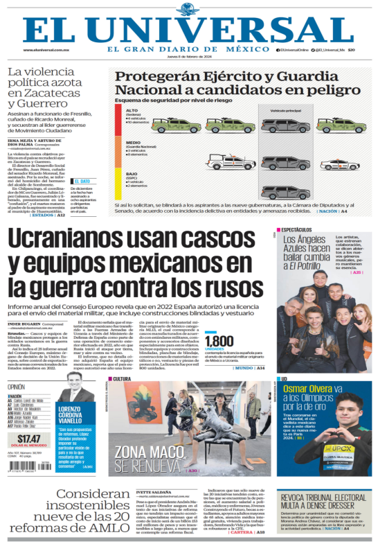 Ucranianos usan cascos y equipos mexicanos en la guerra contra los rusos Informe del Consejo Europeo: el Ministerio de Defensa de España transfirió, en operación de comercio exterior, material bélico para uso ucraniano. |