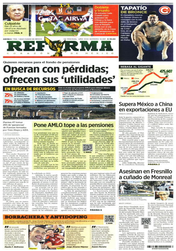 · Xóchitl, entre ataques del poder y la sinergia esperada Xóchitl Gálvez se encontrará hoy un nuevo ambiente. Por una parte, enojo desde el poder por su viaje a Estados Unidos -aunque exitoso según ella- porque se metió en terreno exclusivo. Desde hace lustros Andrés Manuel López Obrador lo considera un conglomerado propio porque nadie penetraba con los migrantes. Y menos iba a advertir sobre el riesgo de elecciones de Estado y muchas medidas en marcha para reforzar el mandato unipersonal desde la Presidencia de la República. Si la gente se fue de México para huir de la miseria, la inmensa mayoría responsabiliza de su desgracia y de su emigración al PRI y al PAN, al primero en el siglo pasado y al segundo en el presente. Esta audacia le multiplicará las críticas desde el oficialismo y por supuesto una intensa campaña adversa y en redes sociales. En contraparte, por fin su campaña se verá arropada por los tres partidos aliancistas -PAN, PRI, PRD- y por los nueve candidatos a gobernadores, 128 a senadores y 300 a diputados locales. Ellos y muchos abanderados locales más: los aspirantes a alcaldes, diputados locales, regidores y muchas otras posiciones hasta rebasar las 20 mil en todo el país.