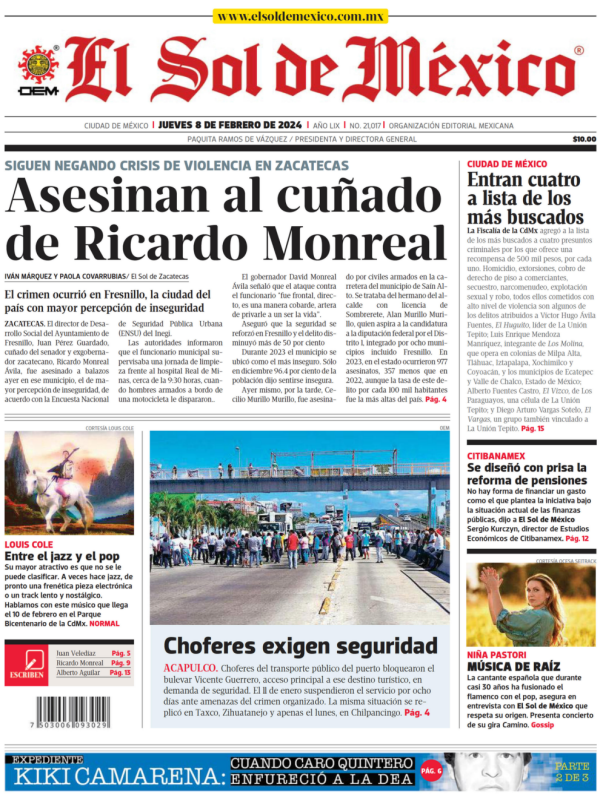 José Pérez Guardado, director de Desarrollo Social del ayuntamiento de Fresnillo, Zacatecas, realizaba trabajos de limpieza para un acto a favor de la paz, cuando lo asesinaron a tiros. La víctima es cuñado del senador Ricardo Monreal, coordinador de la bancada de Morena en el Senado. Su homicidio es un reto abierto al gobernador David Monreal; al alcalde de Fresnillo, Saúl Monreal, al gobierno federal y al mismísimo Presidente de la República. Andrés Manuel López Obrador tiene más de 170 mil razones (homicidios dolosos en lo que va de su sexenio) para modificar su estrategia de seguridad, pero inexplicablemente se aferra a los “abrazos, no balazos”, que han convertido a su administración en la más sangrienta de la historia contemporánea; y al país en rehén de los cárteles de la droga. Los criminales no sólo matan, sino también secuestran, extorsionan, desaparecen, reclutan jóvenes a la fuerza y desplazan poblaciones enteras. Son dueños y señores en vastos territorios de la República. La presencia del Ejército y la Marina en tareas de seguridad pública no los intimida. Se sienten protegidos –y lo están– por los “abrazos” y la impunidad que de ello deriva. “Tambien ellos tienen derechos humanos”, dijo alguna vez AMLO. A cinco años, dos meses, ocho días, de haberse instalado en Palacio Nacional, el Presidente sigue culpando al pasado de lo que hoy ocurre en México. Él y su secretaria de Seguridad Pública, Rosa Icela Rodríguez, viven en el autoengaño. Presumen como un triunfo que los homicidios diarios hayan bajado a 81 en 2023; de los 100 en 2018 y los 101 en 2019. Bienvenida la reducción, sí, pero ese número de asesinatos cada 24 horas, aquí y en China, son un escándalo. La cereza del pastel: el empresario Chilo Murillo, excandidato del PAN a la presidencia municipal de Sombrerete, Zacatecas, tambien fue asesinado ayer en ese municipio, gobernado por su hermano Alan Murillo. Los periodistas Tim Golden, Propublica, Anabel Hernández, Deutsche Welle, y Steven Dudley, InSigh Crime, son responsables del mal humor que ha mostrado López Obrador en los últimos días. Los tres publicaron, casi simultáneamente, investigaciones sobre el supuesto financiamiento del crimen organizado a la campaña presidencial del tabasqueño en 2006, basados en informacion de la DEA. El Presidente amenazó, incluso, con no recibir a Elizabeth Sherwood-Randall, asesora en seguridad de la Casa Blanca. Afortunadamente fue sólo un desliz oral. El incómodo tema mantiene los reflectores. En la sesión del Senado, legisladores del PAN presentaron un exhorto para que AMLO presente una demanda por difamación en los tribunales de Estados Unidos, cosa de la que el Presidente no quiere ni oír ni hablar. Los senadores de Acción Nacional lo consideran necesario, porque esos señalamientos, dicen, no sólo lastiman el nombre de Andrés Manuel López Obrador, sino el de la Presidencia de la República. Julen Rementería, coordinador de la bancada del PAN en el Senado, subió a la más alta tribuna de la nación para exigir: “Si el Presidente no tiene nada que ver, como lo ha dicho, que presente la denuncia correspondiente... “No debieramos permitir, en esta Cámara, que se mancille el nombre de nuestra nación, porque alguien que tiene el cargo político más importante en este país, no responde, no hace nada”. La sugerencia quedó en eso, un exhorto. Los morenos y sus rémoras, que son mayoría, la ignoraron. Dice el senador del Grupo Plural, Gustavo Madero, que el bastón de mando que AMLO le entregó a Claudia Sheinbaum, tenía control remoto. “Se trata de un maximato disfrazado”, aseguró en tribuna. Más en corto, su compañero de bancada, Germán Martínez, citó la frase que hace referencia a Plutarco Elías Calles en los tiempos del Maximato: “Aquí vive el presidente y el que manda vive enfrente, ésa es la propuesta de la continuidad del segundo piso”. AMLO, según Germán, va a vivir en el segundo piso, de ganar la continuidad. “Va a seguir gobernando con sus reformas y mientras no se deslinde la científica de ellas, esa presidenta, si llega, tendrá hilos. “Yo sí veo un riesgo de Maximato, un continuismo cínico. Desde La Chingada (el rancho donde AMLO se irá a vivir cuando concluya su periodo) el bastón será el control de mando”, puntualizó. |